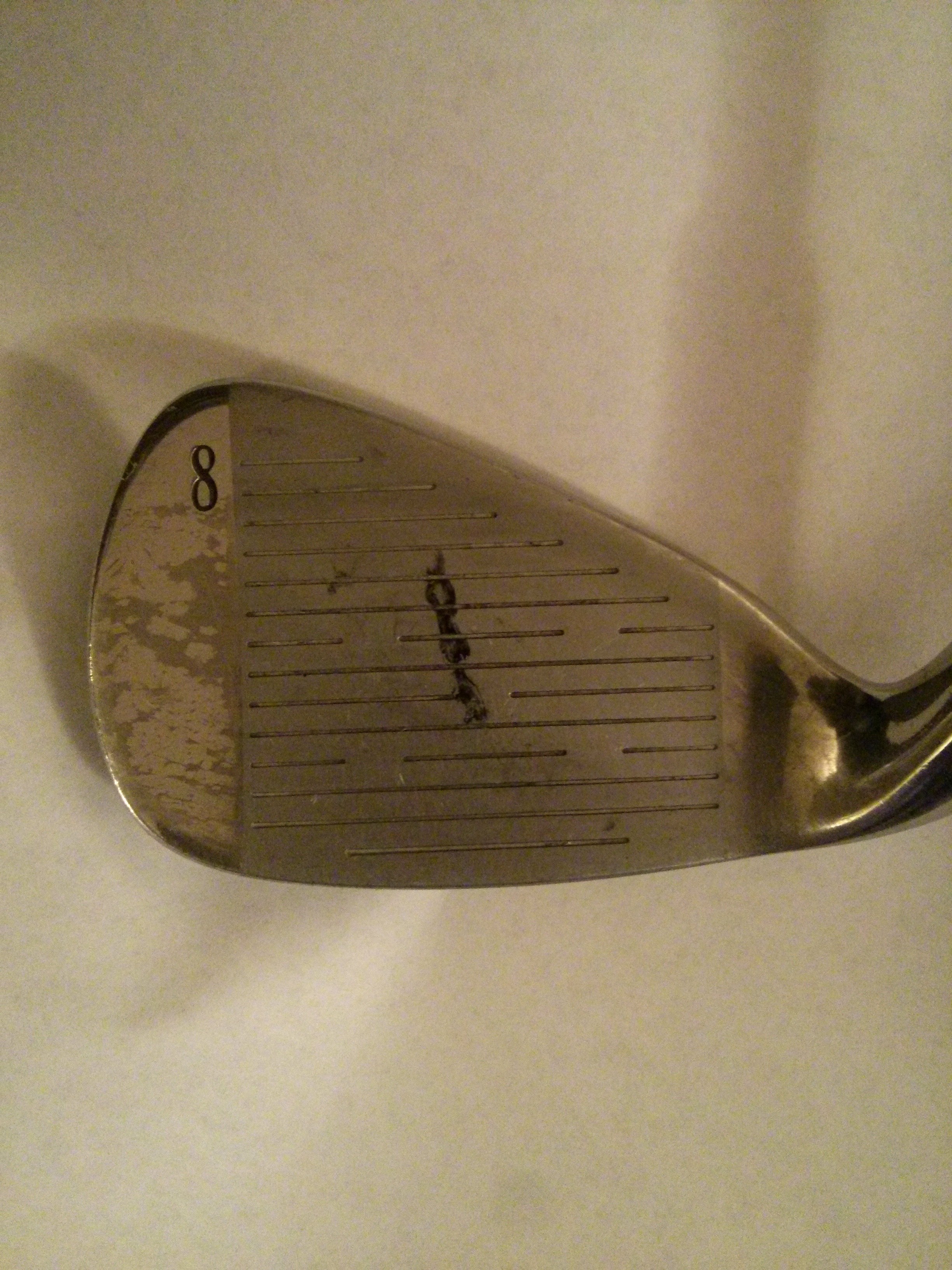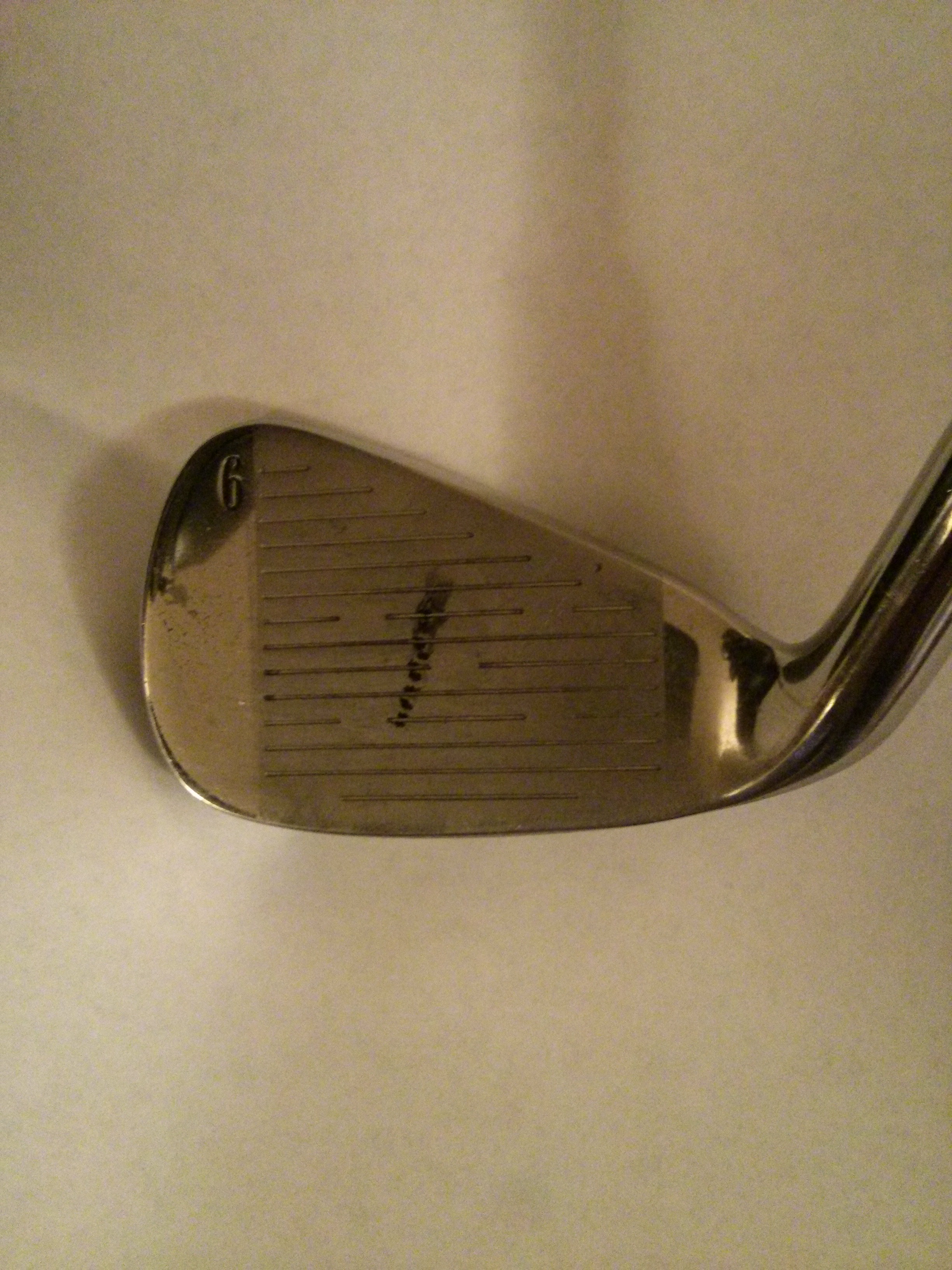 The following two photos show the line left on the club face and what the direction of the lines mean. These examples are exaggerated to demonstrate the point.
